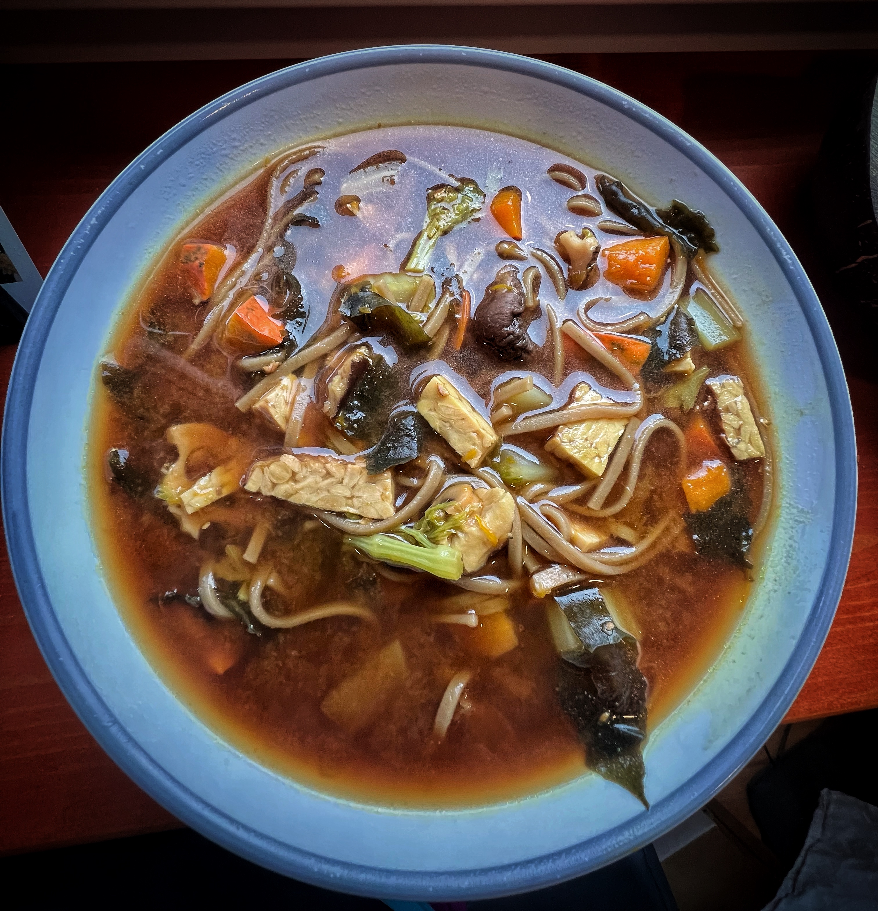 - Přidej přelomené soba nudle a nech ještě asi 5 minut provařit.